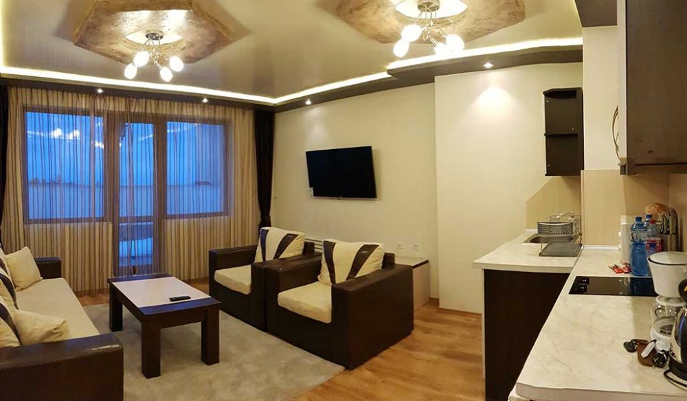- Jednosobni apartman za 2-4 osobe (2+2): spavaća soba sa dva ležaja, dnevni boravak sa sofom na razvlačenje, opremljena kuhinja. Namenjena smeštaju porodica 2 odraslih i dvoje dece, maksimalno 3 odrasle osobe.