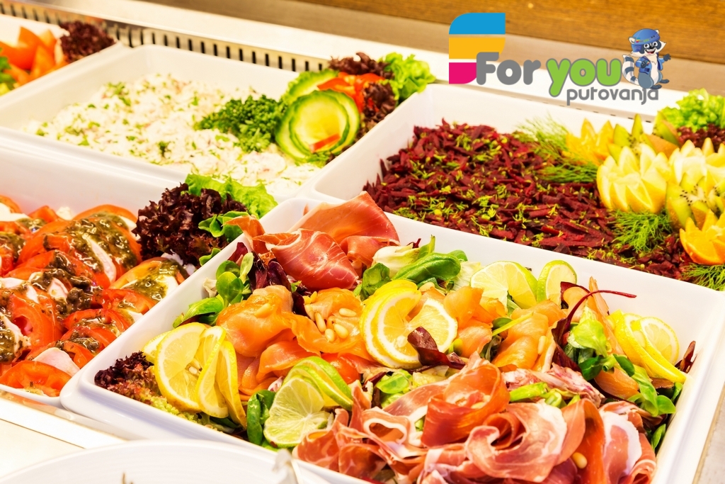 - U svim objektima gde ima ishrane, usluga je po principu samoposluživanja – izbor više jela, osim kada u hotelima boravi manje od 20 osoba kada se prelazi na “menu” – klasičan način usluživanja (izbor tri jela).