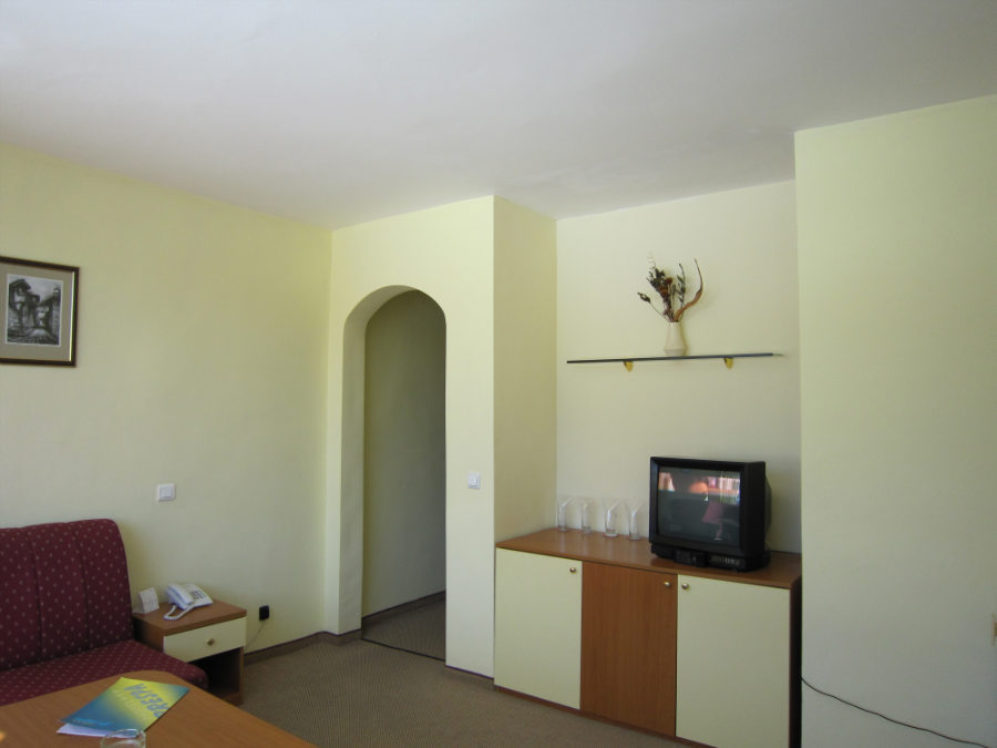 Smeštaj: Gostima hotela na raspolaganju su dvokrevetne sobe i svaka smeštajna jedinica sadrži SAT TV, minibar, kupatilo. Sve sobe imaju pogledna planinu.